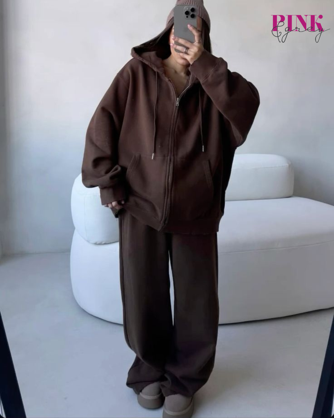 Survêtement deux pièces over size avec fermeture au devant a capuche